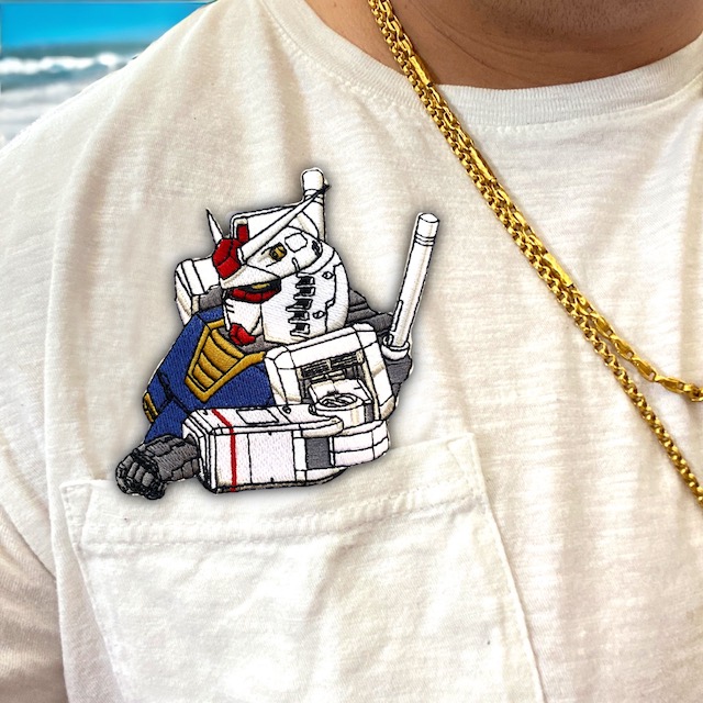 Picture a sleek and sophisticated Gundam... just chillin' and having a good time with some nice tunes, a dope ride, the right vibes and a beautiful scenic drive! You Best Buds transformed this powerful mech into a laid back robot that just wants the wind in his metallic locks and the warm sun shines on that metallic armor! You can put this dope patch above your pocket, bag, or anywhere you think this patch is worthy to be placed. So let's put that top down, while the chrome hits that light real nice on your ride as BB-CRE.8 proudly presents, CRUISIN' GUNDAM (PATCH)!